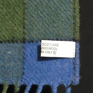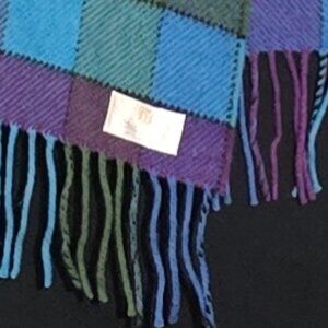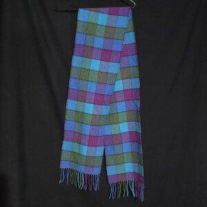 CALZEAT of Scotland 100% Lambswool Scarf Blue Purple Green Squares 9 1/2"x70"