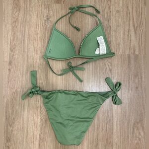 CALZEDONIA Green Sparkly triangle top and tie bottoms bikini size small