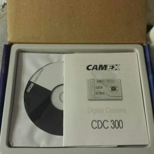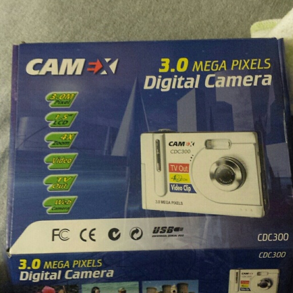 Silver camera, opened box, never used. Camera and chargers are still wrapped. 3.0 mp , 16MB