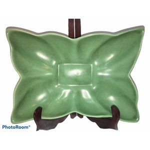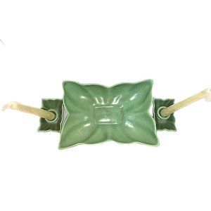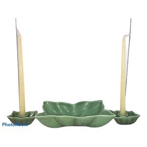 CAMARK Pottery Table Set Console Bowl with 2 Candle Holders Green Soft and Smooth Matte Glaze Rectangular shape with Floral Hints. Its a beautiful set, I think you will really enjoy it. Camark Pottery was made in Arkansas from 1926 - 1963. Very collectible, there is even a book outlining the collection.