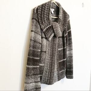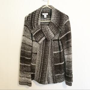 CAMBRIDGE DRY GOODS Gray, Black & White Ombre Striped Knit Cardigan Sweater, L