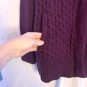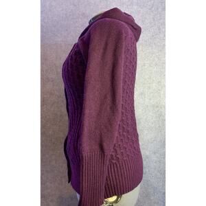 CAMBRIDGE Dry Goods Burgundy Full Zip Cable Knit Hooded Sweater Size M