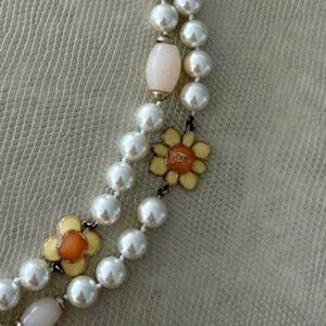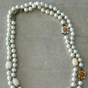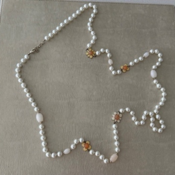CAMELLIA LOGO FAUX PEARL LONG NECKLACE 26"