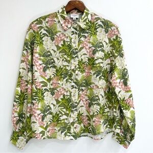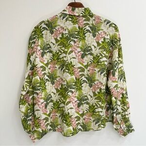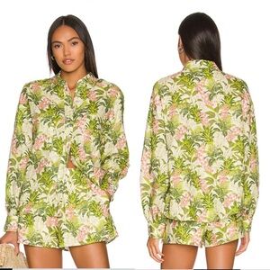 CAMI NYC Belkis Top in Tropics Print 100% Linen Green Pink Diamond Buttons XS
