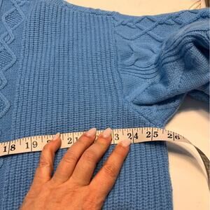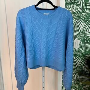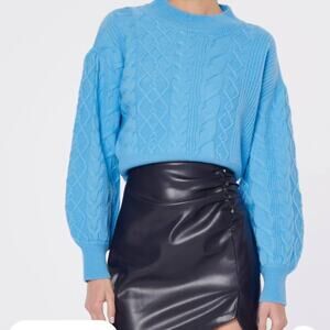 The ultimate go-to sweater, expertly crafted to provide the perfect combination of warmth and style. Its classic design and soft fabric make it a must-have addition to your wardrobe.100% merino wool. The Davney sweater is the perfect top to add a pop of color to your winter wardrobe. Made from cable knit merino wool, this style is slightly cropped with dramatic balloon sleeves. True to size. Dry clean & steam only. Model is wearing an XS.