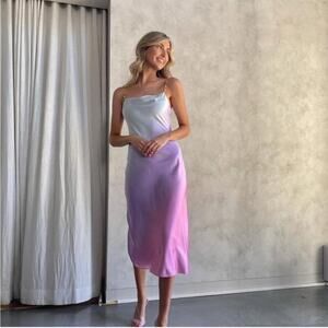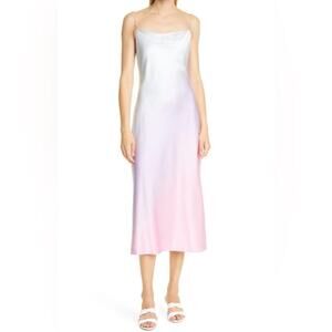 Ombré-dyed in dreamy pastel tones, this silk slip dress has beaded straps. Slight cowlneck Beaded spaghetti straps Pullover style Silk/spandex Dry clean Imported Bias cut Like new - few very light runs Approx measurements: L: 43” - from neck to hem P2p: 15.25” Tags: cocktail, wedding guest, silk, spring, summer, pastel, lightweight, feminine, preppy, Flowy, vacation, party, special occasion, birthday, classy, Easter 1