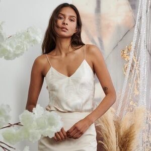 CAMI NYC Silk Raine Cami in Cream Swirl Sleeveless Top $175
