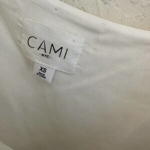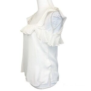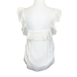 CAMI NYC Womens XS Ivory Silk Tank Ruffle Sleeve Metallic Neck Sleeveless Top.