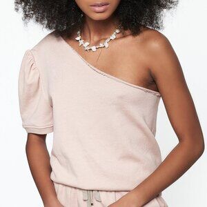 Cami NYC's 'The Beck' top combines elements of comfortable loungewear with the femininity of a pretty blouse. It's cut from French cotton-terry in a soft 'Sand' hue and has a slightly loose silhouette with a single puffed shoulder and ribbed trims.