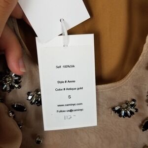 CAMI nyc annie tank top in antique gold. embellished, size S, NWT
