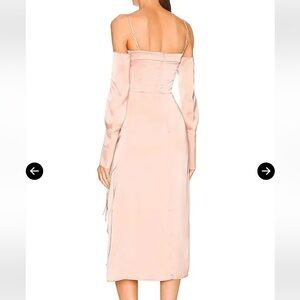CAMILA COELHO Karin Side Slit Off Shoulder Satin Midi Dress Pink Sz XS