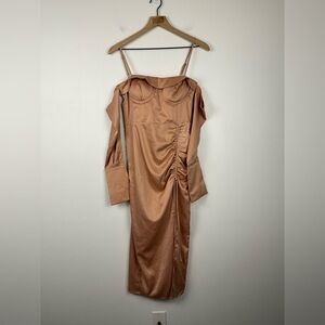 CAMILA COELHO Karin Side Slit Off Shoulder Satin Midi Dress Pink Sz XS