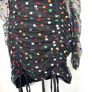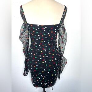CAMILA COELHO Revolve Kiana Mini Dress Blqck Multicolor Polka Dot Size Smalll