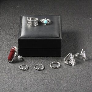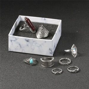 **CAMILLA* 8-Pc Silver x Turquoise Fashion Ring Set