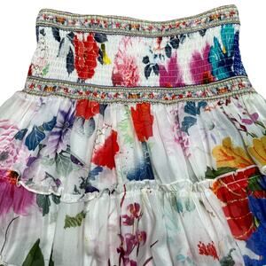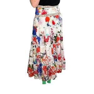 Women's colorful floral silk shirred waist tiered circle maxi skirt from Camilla in size medium. Excellent used condition. Can be worn as a dress too (see last photo to show example, not color).