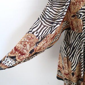 CAMILLA Short Dress w Draped Sleeve wild fire print silk NWT