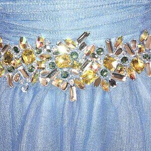 CAMILLE LA VIE BLUE ORGANZA HOMECOMING PARTY DRESS W/ CRYSTAL EMBELLISHED WAIST