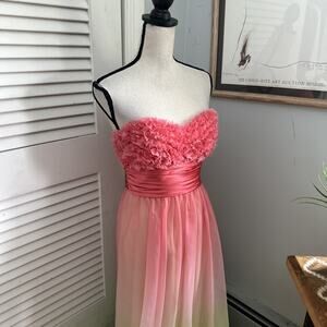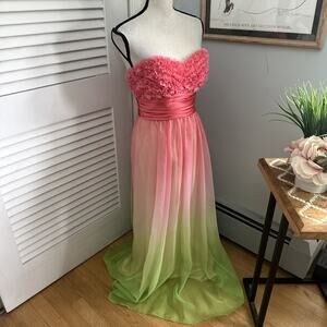 CAMILLE LA VIE Womens Dress 4P Strapless Pink Green Ombre Gown Wedding Evening