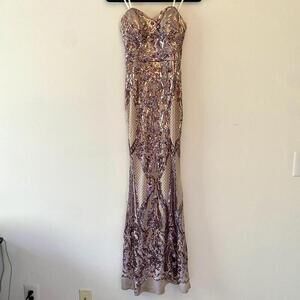 CAMILLE LA VIE pink sequin strapless maxi formal dress