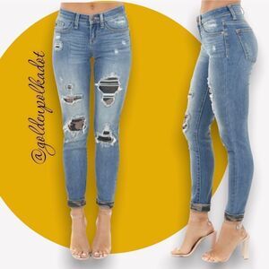 CAMO Print Patch Medium Wash Distressed Skinny Jeans High Rise Size 18W NWT