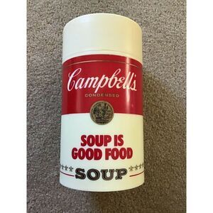 CAMPBELL'S FUEL FOR FITNESS SOUP IS GOOD FOOD THERMOS. Good condition, slightly yellowed except where a sticker was removed.