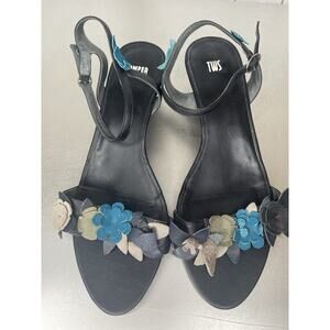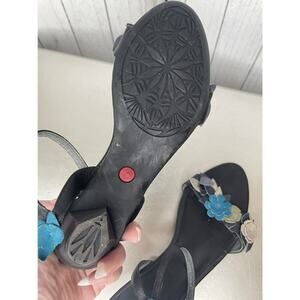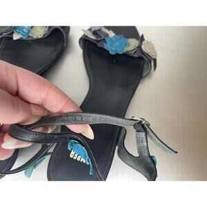 CAMPER Women’s Leather Sandal Heels Black Suede Blue Gray Flowers Size 10