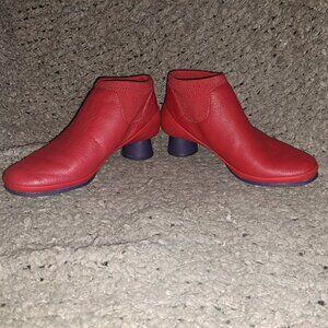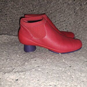 CAMPER-ANKLE BOOT-Alright-Red Leather/Suede-Purple Rubber Round Heel-Sz 37-NM