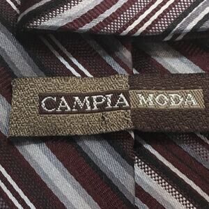 CAMPIA MODA NECKTIE, 100 % SILK, BURGUNDY, GREYS and BLACK REGIMENT STRIPE DESIGN Pre-owned Good Condition Approx.59" L 4" W Enjoy, HARVEY (9)