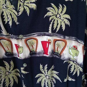 CAMPIA MODA Vintage VTG Hawaiian Shirt Cocktails + Palm Trees Sz L