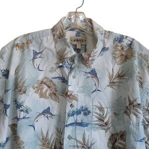 Preowned Campia Moda vintage Men's Tropical Shirt in excellent condition.Men's Swordfish Marlin Hawaiian Short Sleeve Shirt size large