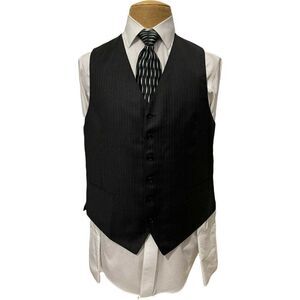 CANALI Men's Two Piece Sports Coat Vest Charcoal Gray Orange Striped Size 44 L
