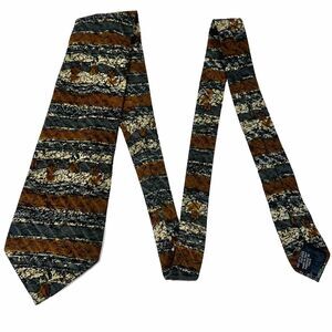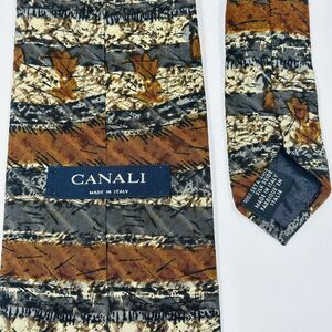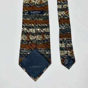 CANALI Necktie Tie Silk Satin Brown Blue Abstract Flower Print Italy EUC