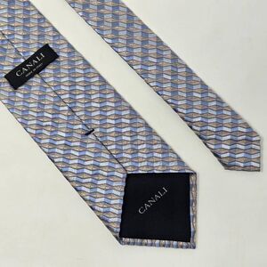 CANALI SILK TIE BLUE WHITE TAN ZIG ZAG STRIPE HEAVY TEXTURED SATIN 4" X 59"