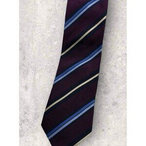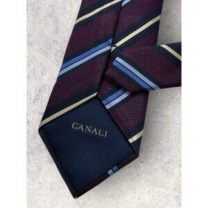 CANALI Silk Tie ITALY Burgundy Blue Striped W:3.7" EUC