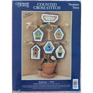 CANDAMAR Designs BIRDHOUSES TREASURE TREES Cross Stitch Kit Complete Wood Dowels