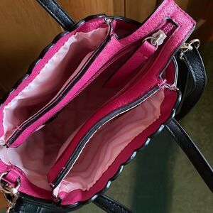 CANDIE'S Black & White zig-zag mini-purse w/pink flowers, Bryant bow, 3 sections