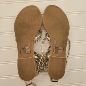 This beautiful pair of gladiator sandals are in good condition. Lightweight with a gold and silver color.