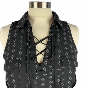 CANDIE'S Lace Up Sleeveless Black Print Top M