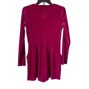 CANDIES Long Sleeve V-Neck Short Raspberry Velvet Romper Size Small