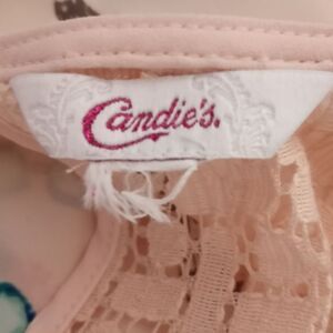 CANDIE'S PINK & BLUE SHEER BLOUSE SZ.M EUC. GORGEOUS BLOUSE IN EXCELLENT USED CONDITION. NO SIZE LISTED. ESTIMATED SIZE M. ARMPIT TO ARMPIT 38"