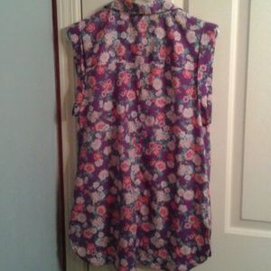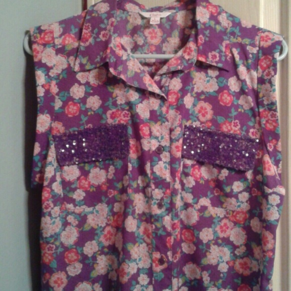 DARLING sleeveless purple floral top with pretty sequined pockets, purple buttons, dressy casual with jeans or pencil skirt, alas ....bought it for an occasion that was canceled, it happens . NWOT