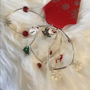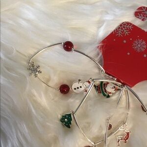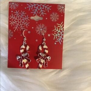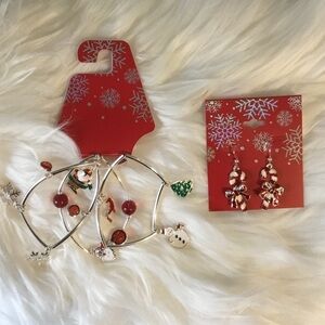 #9 Candy Cane drop earrings & Red Bead & Christmas charm stretch bracelet set of 3 all new in package