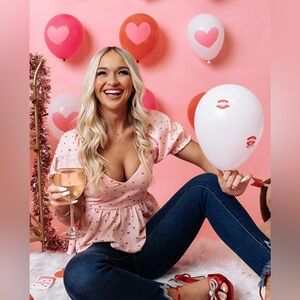 CANDY HEARTS PEPLUM TOP Puff Sleeve Size S