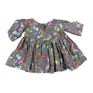 Gray and colorful floral pattern ruffle mini dress from Candy Kirby Designs in size 5T. Minor wash wear otherwise great used condition.