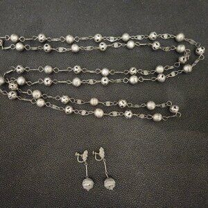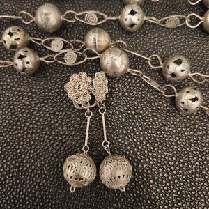 MEXICAN CANNETILLE FILIGREE BALL AND LASSO 72" LONG WEDDING NECKLACE WITH MATCHING FILIGREE BALL DROP CLIP-ON EARRINGS FOR SALE FOR $145 - Mexican Cannetille Filigree Ball and Lasso 72" Long Wedding Necklace with Matching Filigree Ball Drop Clip-On Earrings can be worn doubled or tripled.