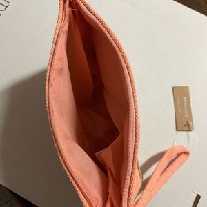 Cosmetic bag in deep coral and tan