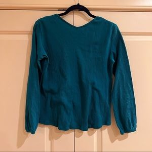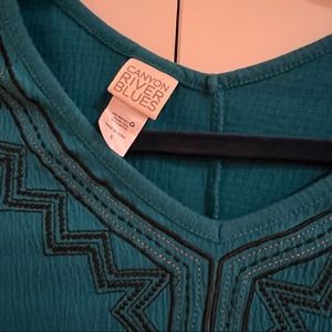 Super cute turquoise top! Boho style with embroidery around neckline. Elastic bottom.