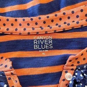 CANYON RIVER BLUES, WOMENS STRIPE TOP. V-NECK, BUTTON CLOSURE. SIZE XL