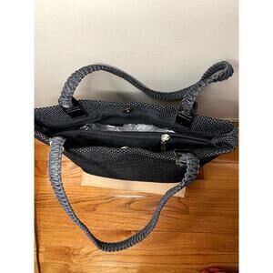CAPACCIOLI Navy Blue Woven Leather Trim Handbag Made in Italy Luxe Resort Beach