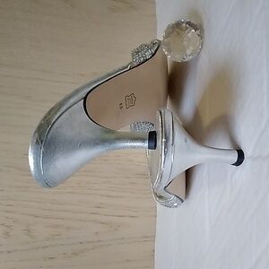 Silver cute spanking sandals, heels 3", size 8B, great condition